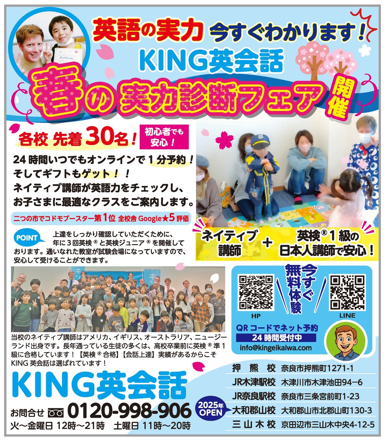 yamatokoriyama@kingeikaiwa.com 🟢 LINE @eikaiwa.koriyama ☎ 0743-84-7713